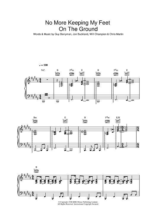 Digital Sheet Music for No More Keeping My Feet On The Ground by Chris Martin, Coldplay, Jonny Buckland, Guy Berryman scored for Piano/Vocal/Chords; id:397049