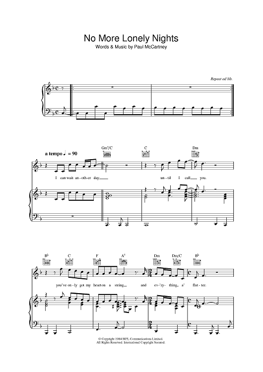 "No More Lonely Nights" Sheet Music by Paul McCartney