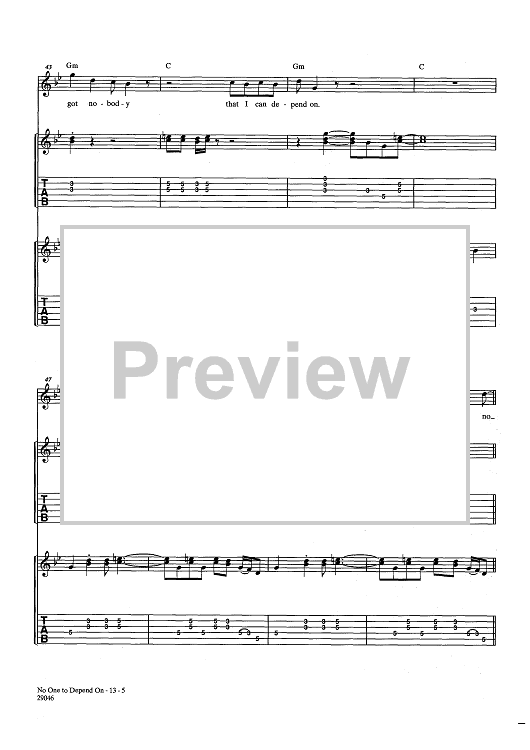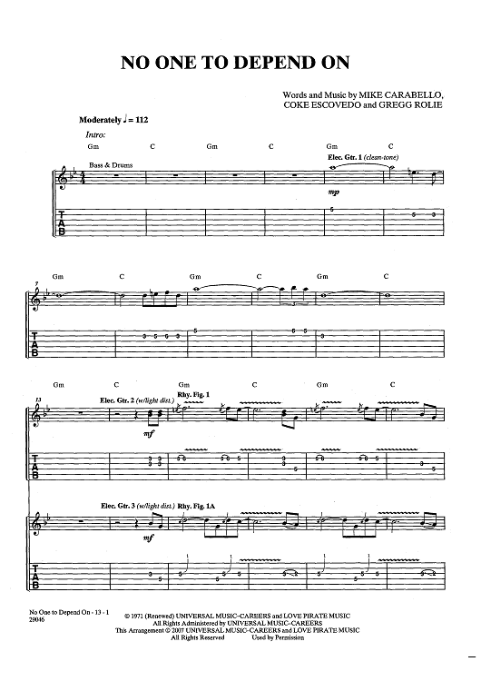 Digital Sheet Music for No One To Depend On by Gregg Rolie, Michael Carabello, Santana, Coke Escovedo scored for Guitar Tab/Vocal/Chords; id:438257