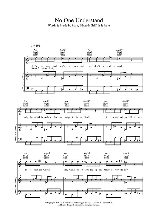 Digital Sheet Music for No One Understand by Space scored for Piano/Vocal/Chords; id:376295