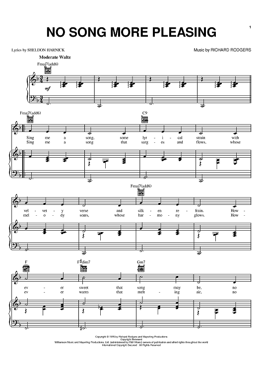 Digital Sheet Music for No Song More Pleasing by Richard Rodgers, Sheldon Harnick scored for Piano/Vocal/Chords; id:381402