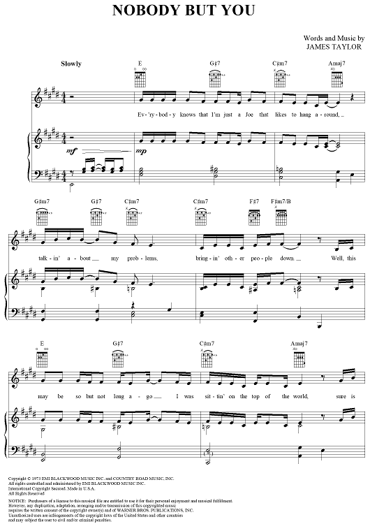 Digital Sheet Music for Nobody but You by James Taylor scored for Piano/Vocal/Chords; id:318647
