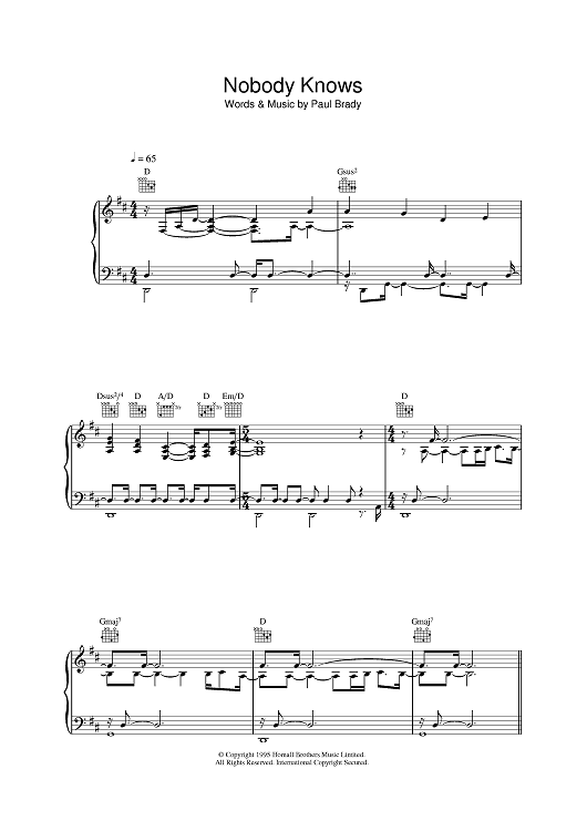 Digital Sheet Music for Nobody Knows by Paul Brady scored for Piano/Vocal/Chords; id:398759