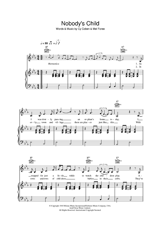 Digital Sheet Music for Nobody's Child by Mel Foree, Cy Coben, Hank Snow scored for Piano/Vocal/Chords; id:401402