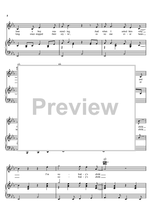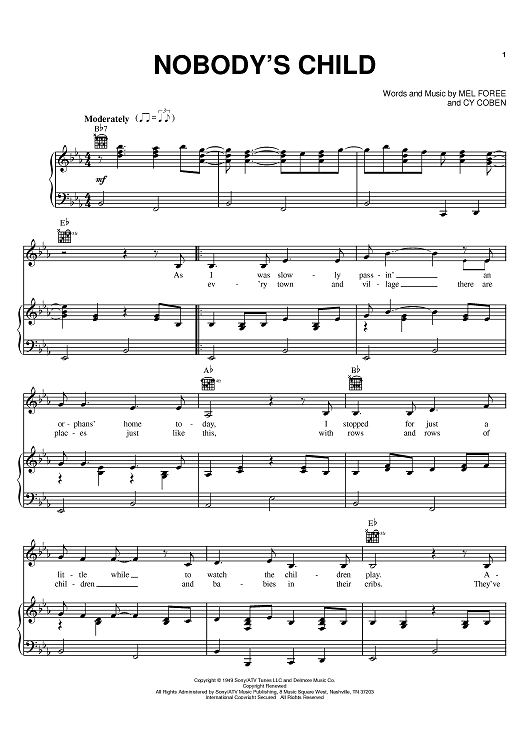Digital Sheet Music for Nobody's Child by Mel Foree, Cy Coben, The Traveling Wilburys scored for Piano/Vocal/Chords; id:402458