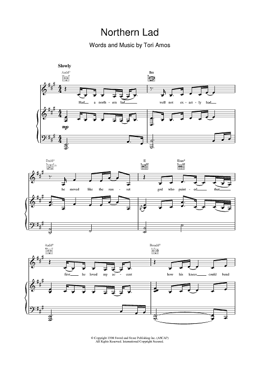 Digital Sheet Music for Northern Lad by Tori Amos scored for Piano/Vocal/Chords; id:376708
