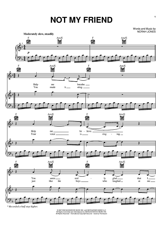 Digital Sheet Music for Not My Friend by Norah Jones scored for Piano/Vocal/Chords; id:397572