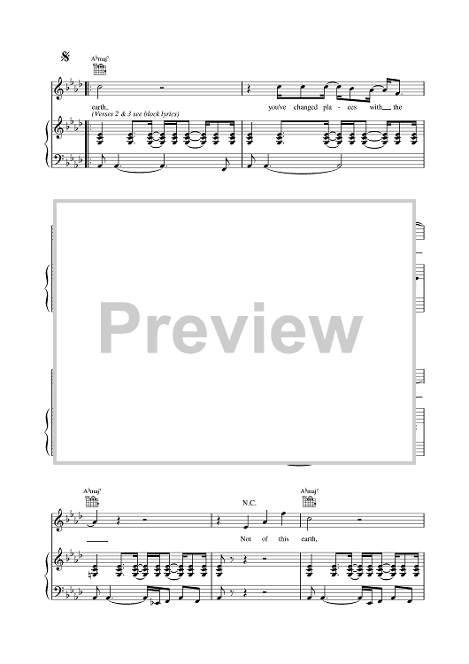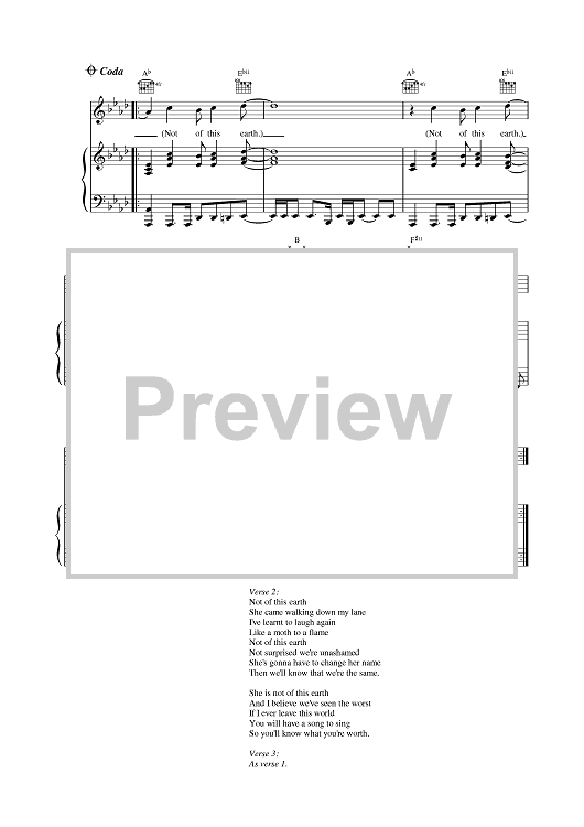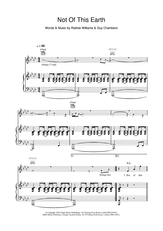 Digital Sheet Music for Not Of This Earth by Robbie Williams scored for Piano/Vocal/Chords; id:377420