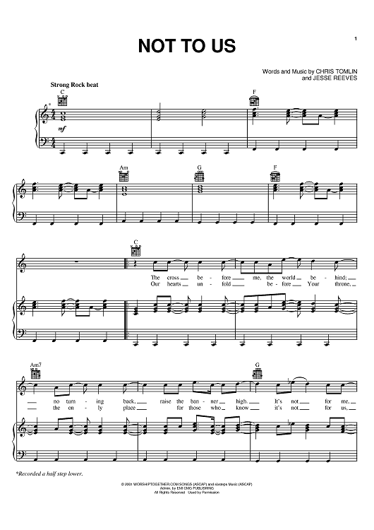 Digital Sheet Music for Not To Us by Chris Tomlin, Jesse Reeves scored for Piano/Vocal/Chords; id:389075