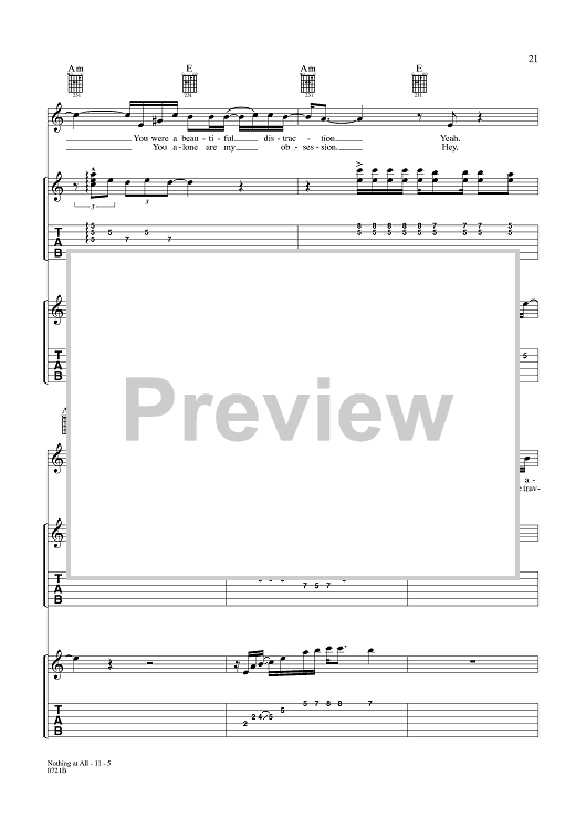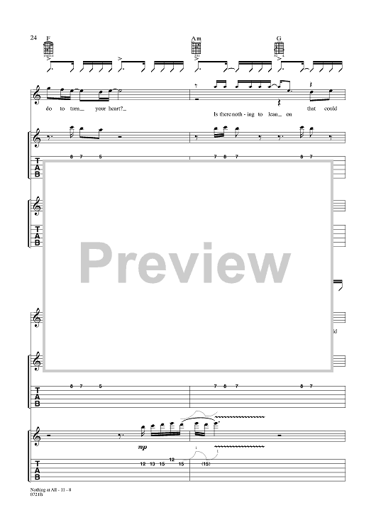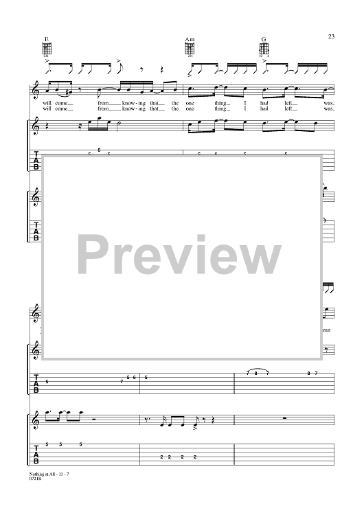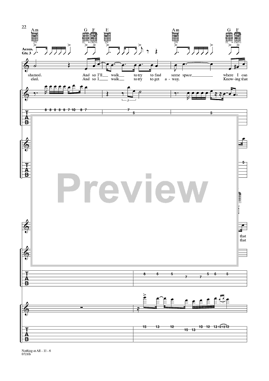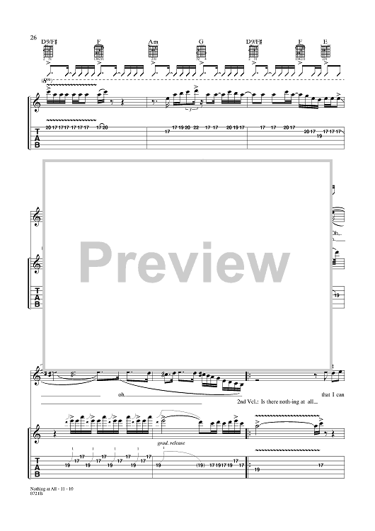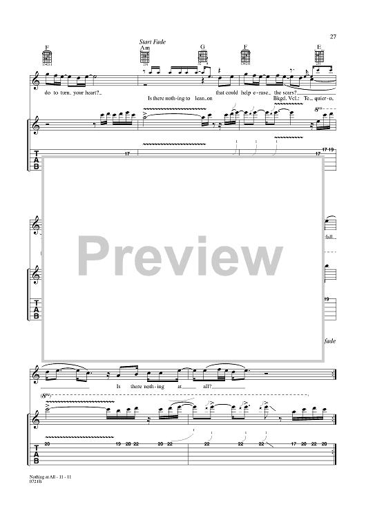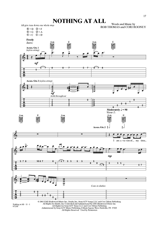 Digital Sheet Music for Nothing at All by Rob Thomas, Santana, Cory Rooney scored for Guitar Tab/Vocal/Chords; id:362691