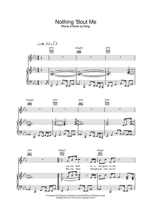 Digital Sheet Music for Nothing 'Bout Me by Sting scored for Piano/Vocal/Chords; id:387148