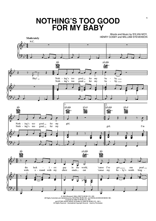 Digital Sheet Music for Nothing's Too Good For My Baby by Stevie Wonder, Henry Cosby, Sylvia Moy, William Stevenson scored for Piano/Vocal/Chords; id:370250