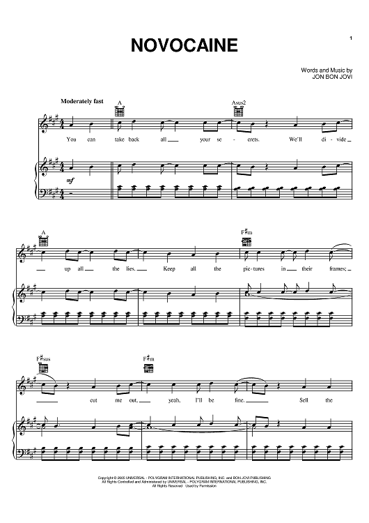 Digital Sheet Music for Novocaine by Bon Jovi, Jon Bon Jovi scored for Piano/Vocal/Chords; id:388797