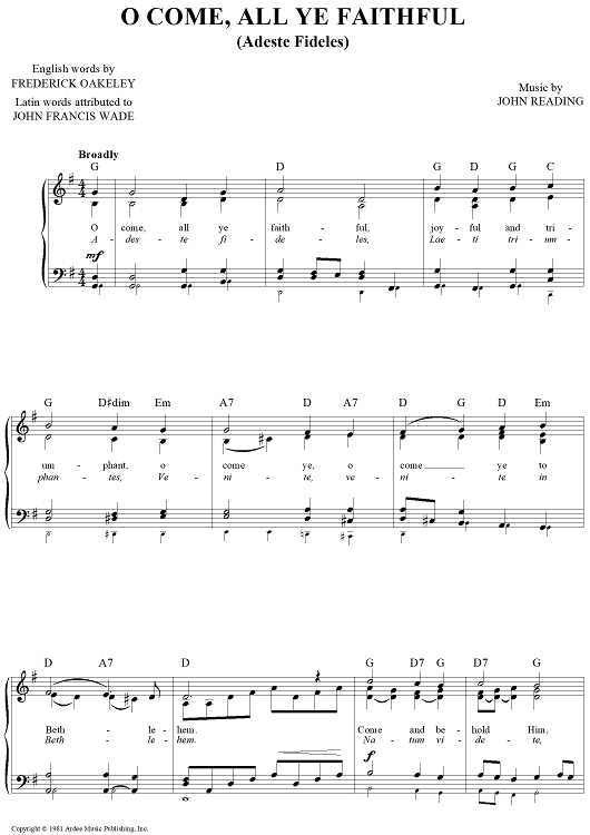 "O Come All Ye Faithful (Adeste Fideles)" Sheet Music by John Reading