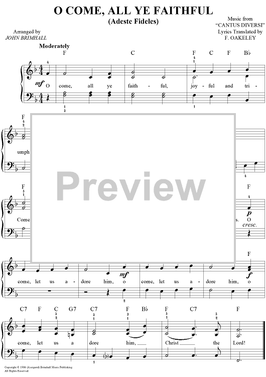 Digital Sheet Music for O Come, All Ye Faithful (Adeste Fideles) by Frederick Oakeley, John Brimhall scored for Easy Piano/Vocal/Chords; id:450553