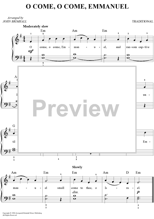 Digital Sheet Music for O Come, O Come, Emmanuel by John Brimhall, Traditional scored for Easy Piano/Vocal/Chords; id:450556