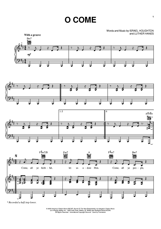 Digital Sheet Music for O Come by Israel Houghton, Luther Hanes scored for Piano/Vocal/Chords; id:401050