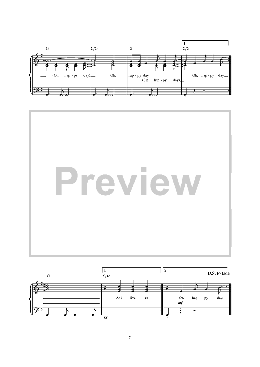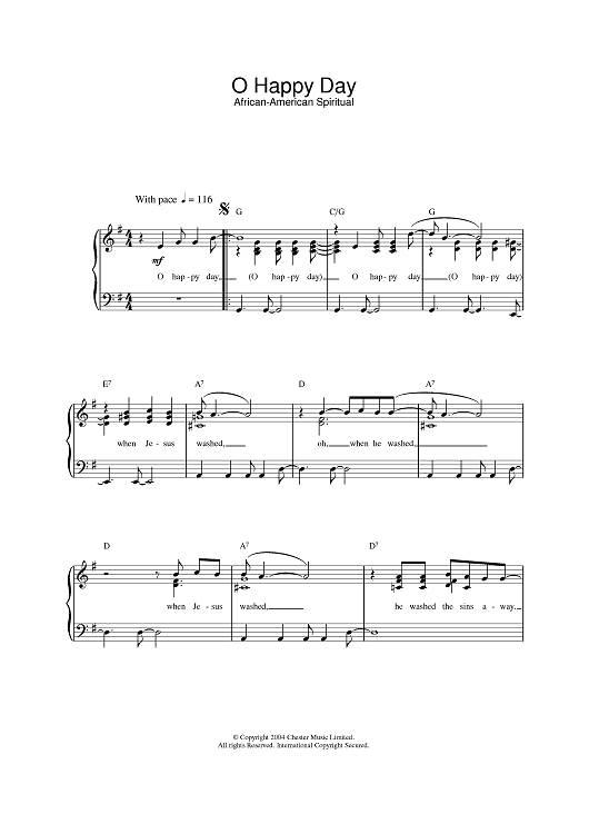 Digital Sheet Music for O Happy Day by scored for Piano/Vocal/Chords; id:378596