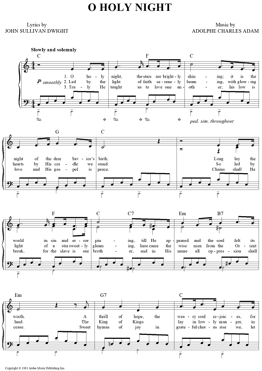Digital Sheet Music for O Holy Night by John Sullivan Dwight, Adolphe Adam scored for Easy Piano/Vocal/Chords; id:431744