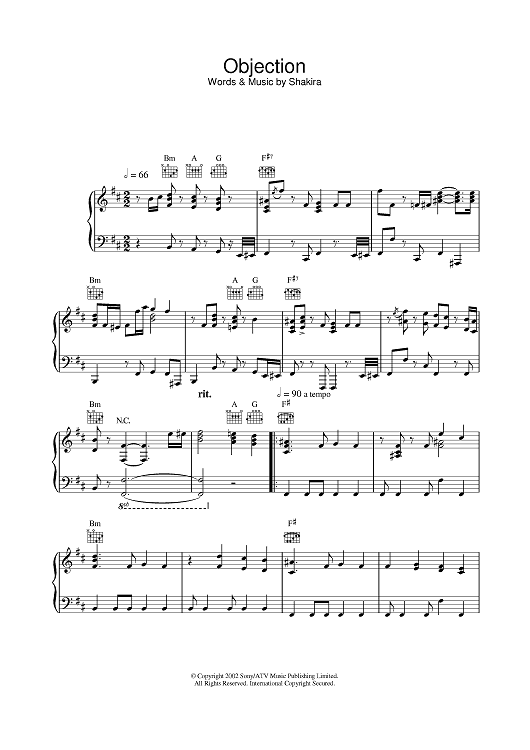 Digital Sheet Music for Objection by Shakira scored for Piano/Vocal/Chords; id:377720