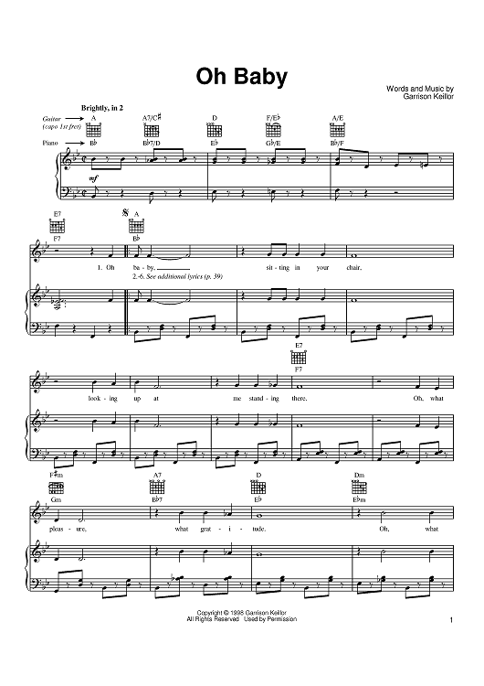 Digital Sheet Music for Oh Baby by Garrison Keillor scored for Piano/Vocal/Chords; id:381421