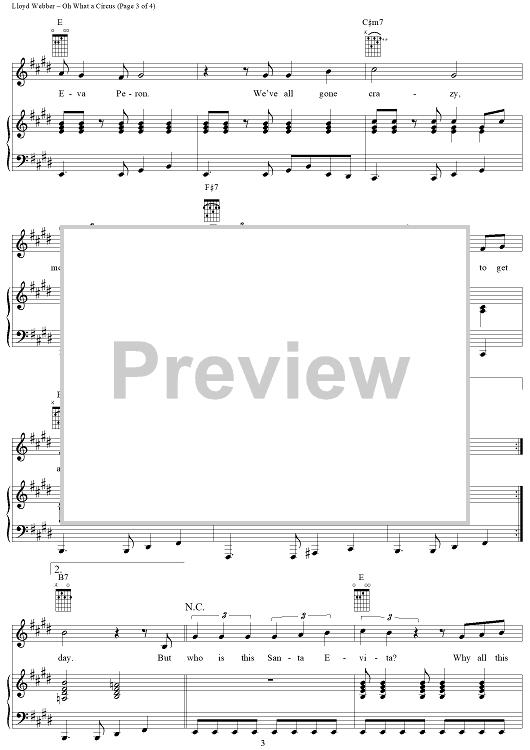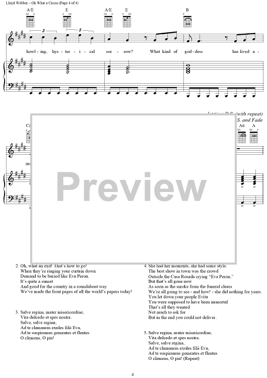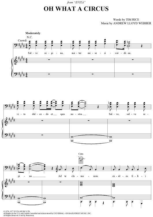 Digital Sheet Music for Oh What A Circus by Andrew Lloyd Webber, Tim Rice, Antonio Banderas scored for Piano/Vocal/Chords; id:367144