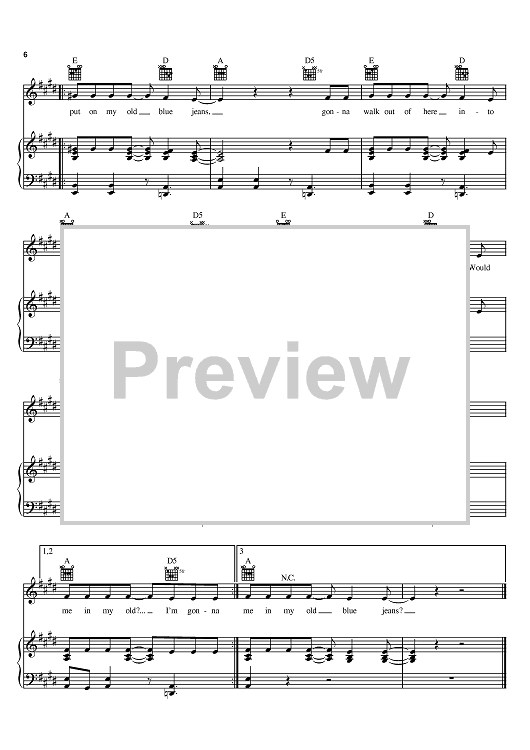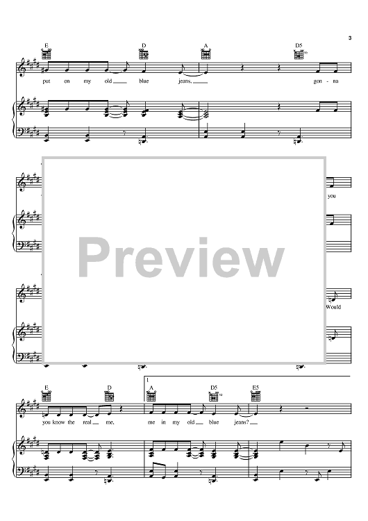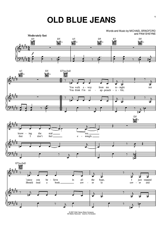 Digital Sheet Music for Old Blue Jeans by Michael Bradford, Pam Sheyne, Miley Cyrus scored for Piano/Vocal/Chords; id:401101