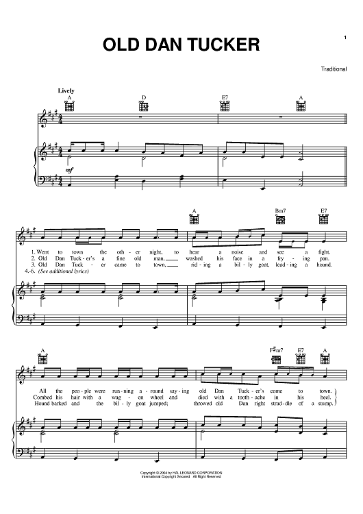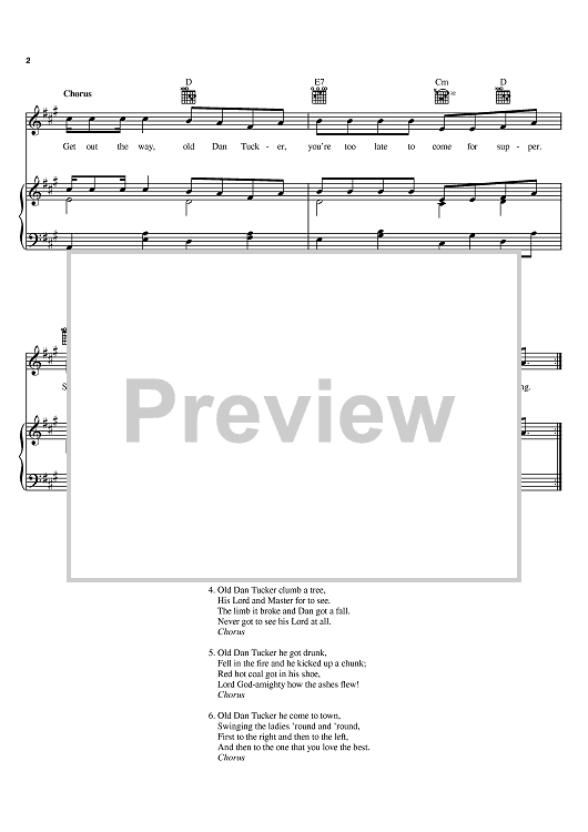 Digital Sheet Music for Old Dan Tucker by Traditional scored for Piano/Vocal/Chords; id:375476