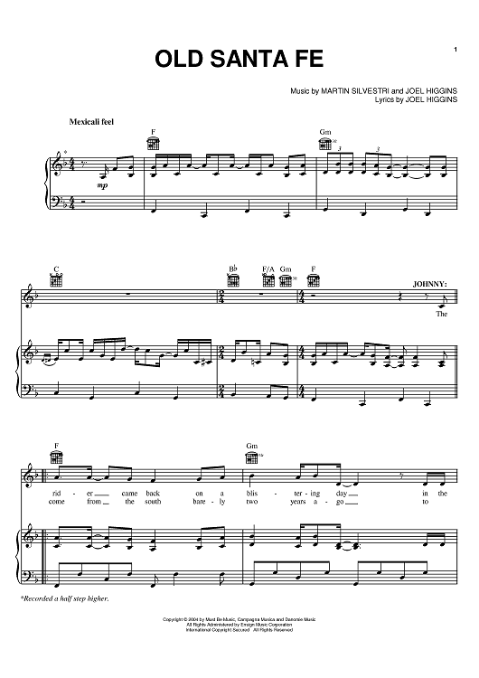 Digital Sheet Music for Old Santa Fe by Joel Higgins, Martin Silvestri scored for Piano/Vocal/Chords; id:386492