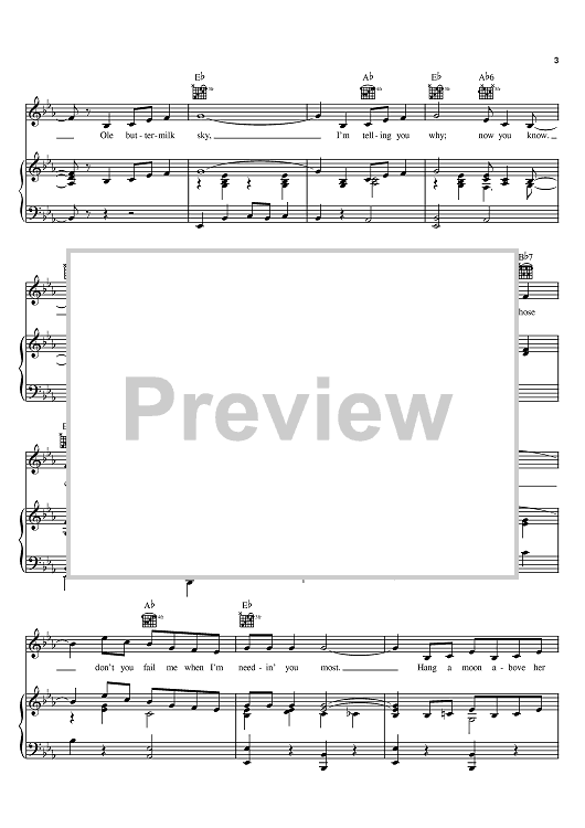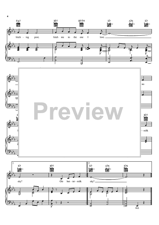 Digital Sheet Music for Ole Buttermilk Sky by Hoagy Carmichael, Jack Brooks scored for Piano/Vocal/Chords; id:394648