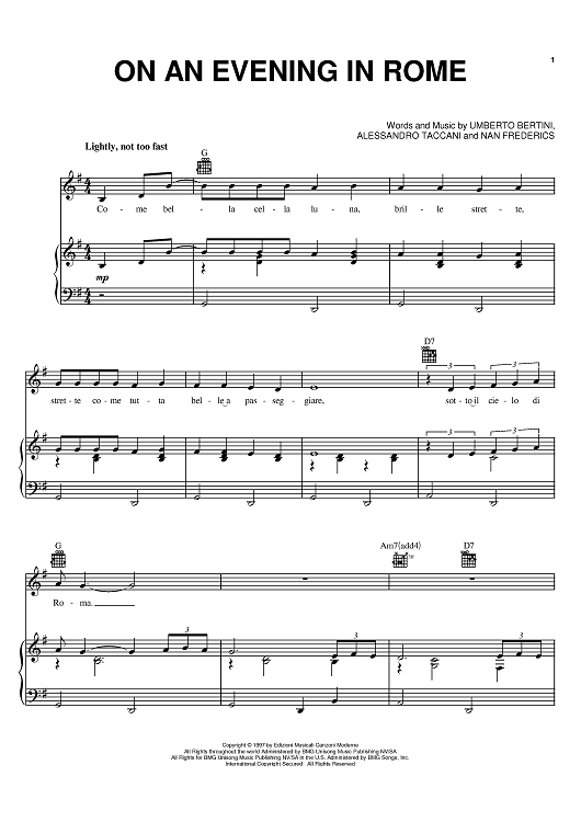 Digital Sheet Music for On An Evening In Rome by Dean Martin, Umberto Bertini, Nan Frederics, Alessandro Taccani scored for Piano/Vocal/Chords; id:379239