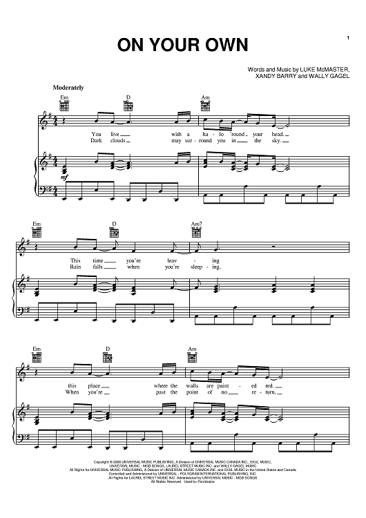Digital Sheet Music for On Your Own by Nick Lachey, Xandy Barry, Wally Gagel, Luke McMaster scored for Piano/Vocal/Chords; id:401837