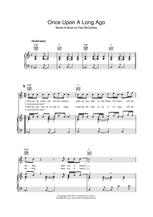 Digital Sheet Music for Once Upon A Long Ago... by Paul McCartney scored for Piano/Vocal/Chords; id:390553