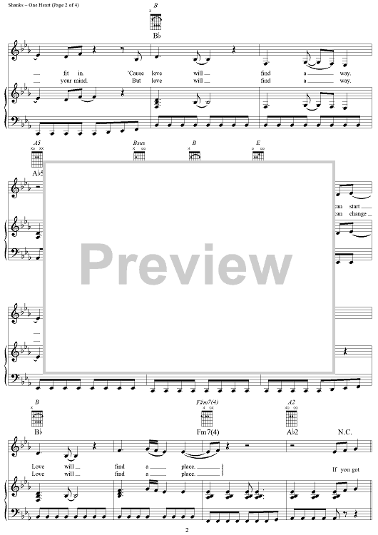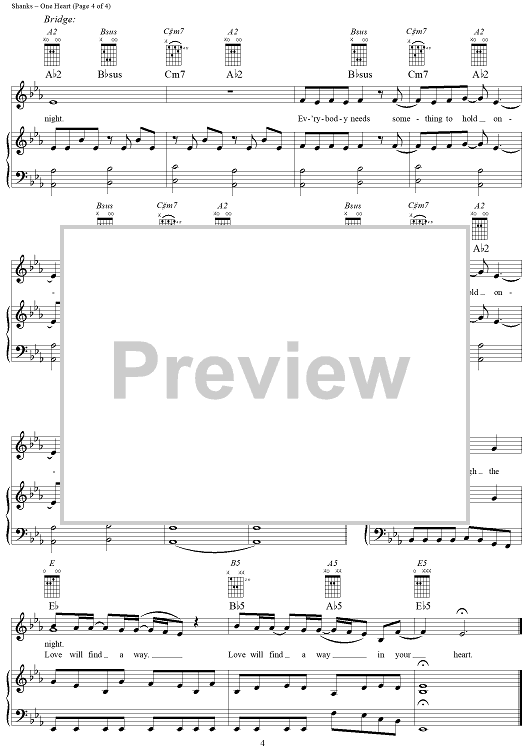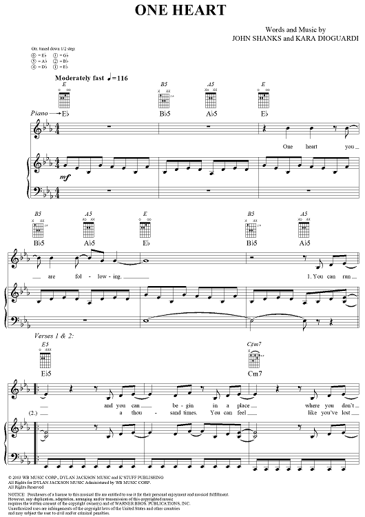 Digital Sheet Music for One Heart by Celine Dion, John Shanks, Kara DioGuardi scored for Piano/Vocal/Chords; id:296480