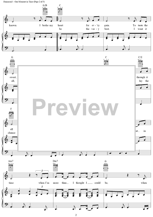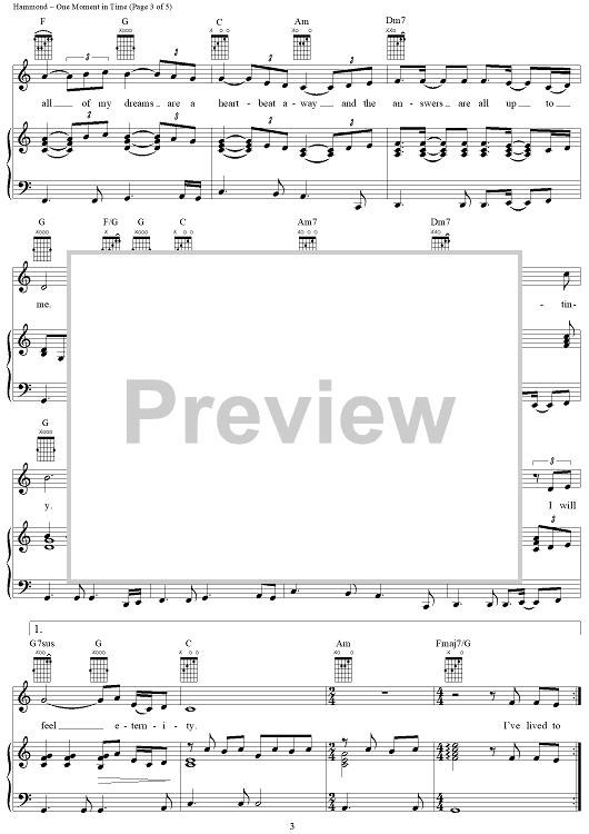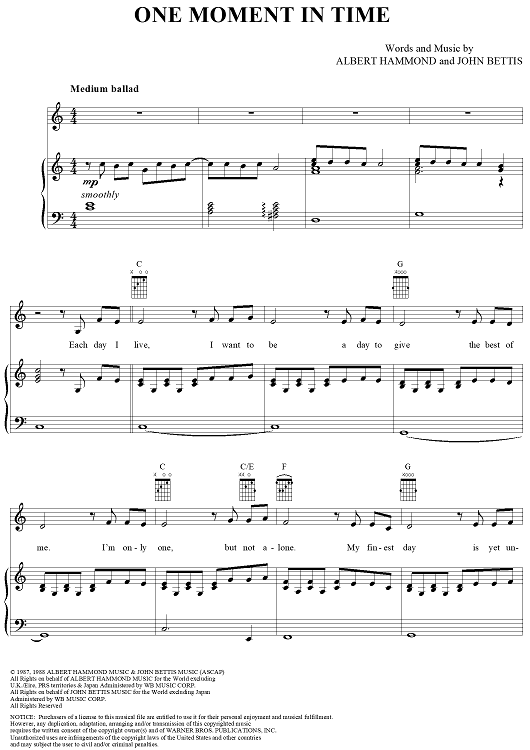 Digital Sheet Music for One Moment In Time by Albert Hammond, John Bettis scored for Piano/Vocal/Chords; id:241817