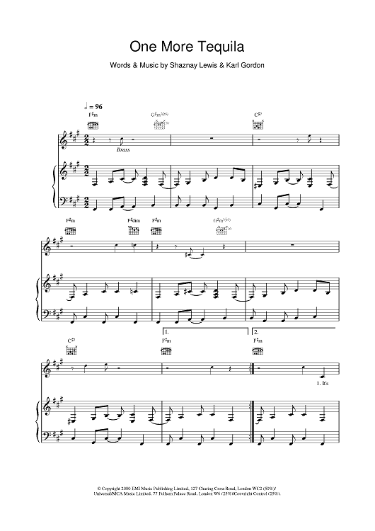 Digital Sheet Music for One More Tequila by All Saints scored for Piano/Vocal/Chords; id:377191