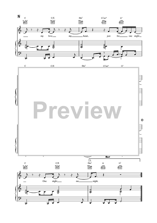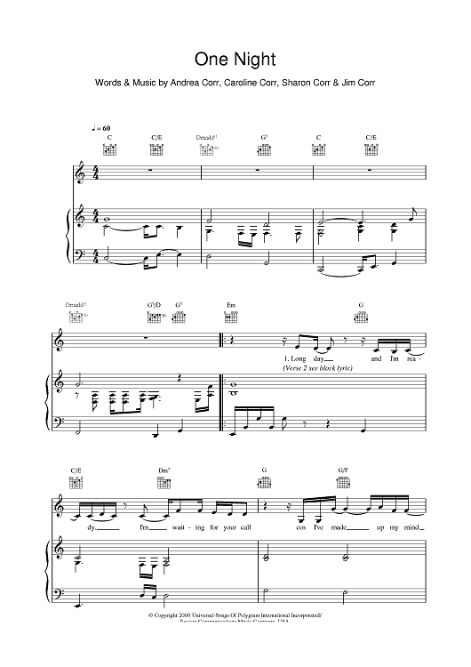 Digital Sheet Music for One Night by The Corrs, Sharon Corr, Caroline Corr, Andrea Corr, Jim Corr scored for Piano/Vocal/Chords; id:377115