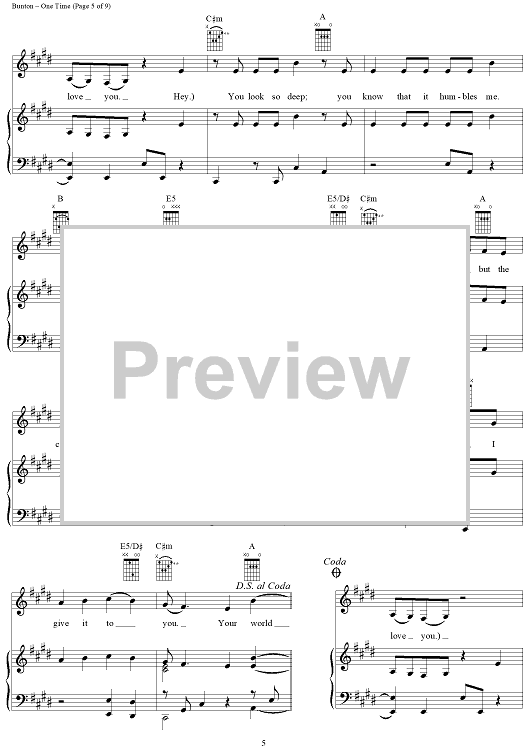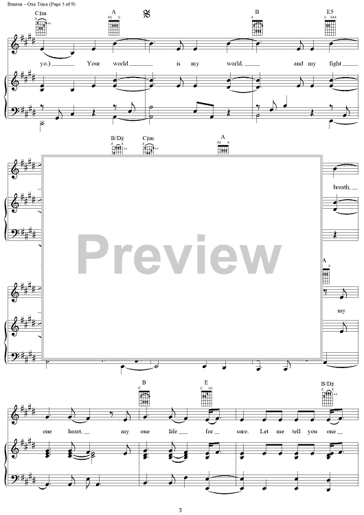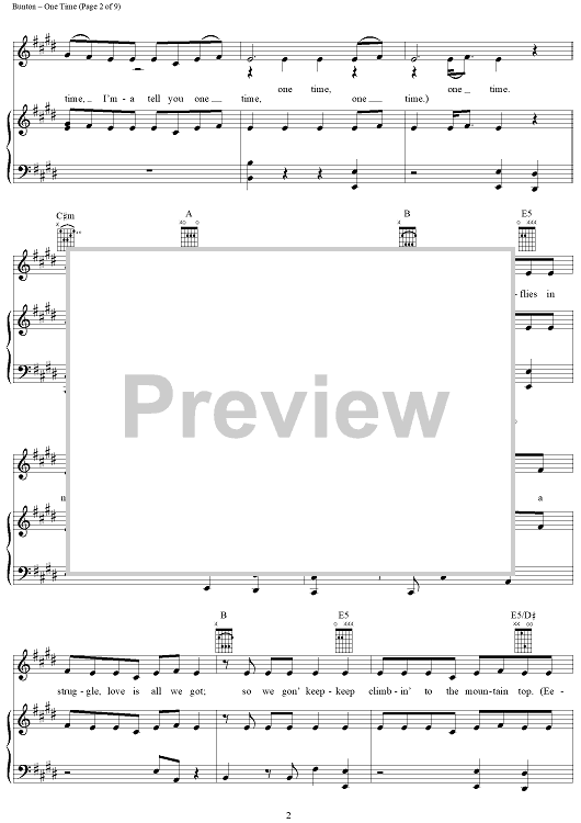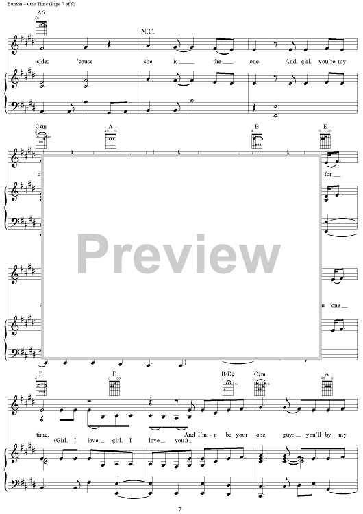 Digital Sheet Music for One Time by Tricky Stewart, Justin Bieber scored for Piano/Vocal/Chords; id:406693