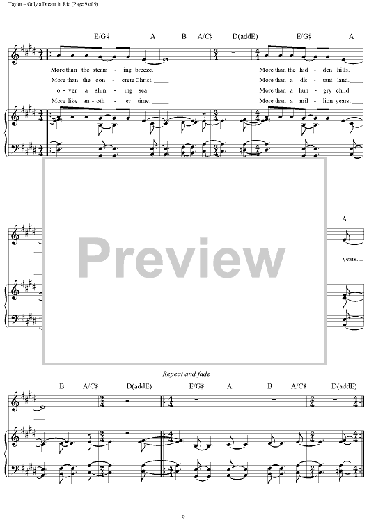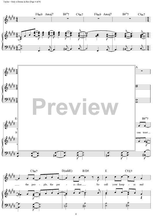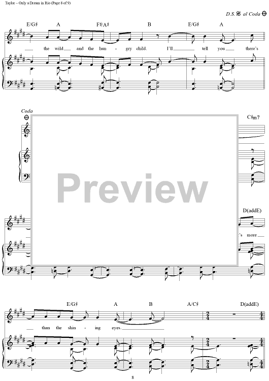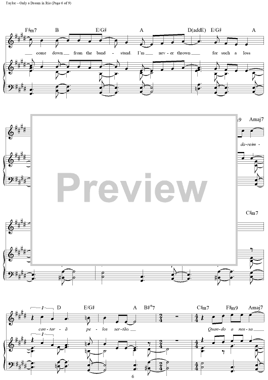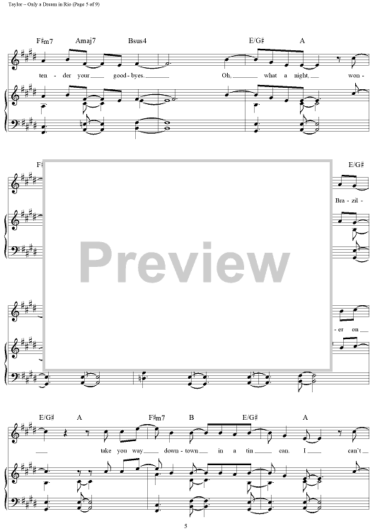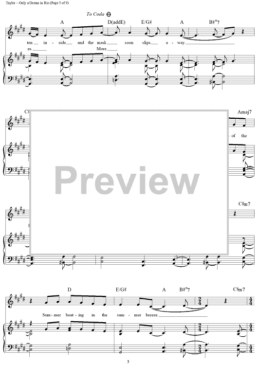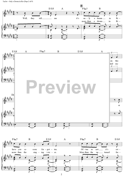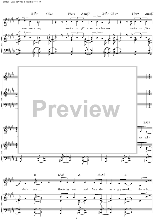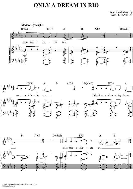 Digital Sheet Music for Only a Dream in Rio by James Taylor scored for Piano/Vocal/Chords; id:259970