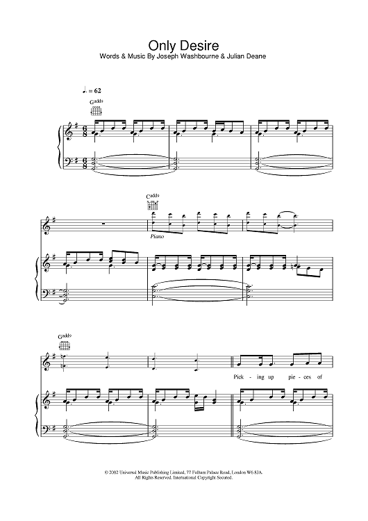Digital Sheet Music for Only Desire by Toploader scored for Piano/Vocal/Chords; id:377606