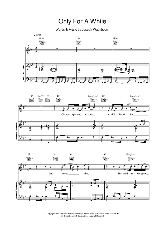 Digital Sheet Music for Only For A While by Toploader scored for Piano/Vocal/Chords; id:377135
