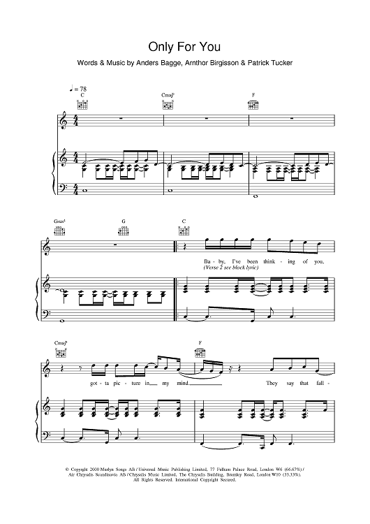 Digital Sheet Music for Only For You by Arnthor Birgisson, Patrick Tucker, Ronan Keating, Anders Bagge scored for Piano/Vocal/Chords; id:377127