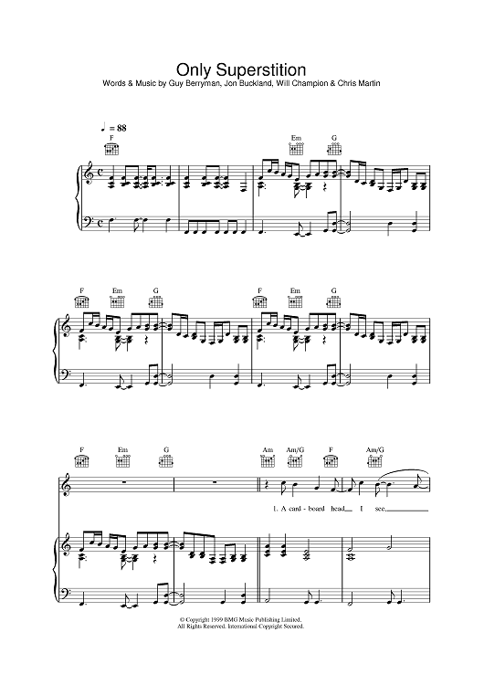 Digital Sheet Music for Only Superstition by Chris Martin, Coldplay, Jonny Buckland, Guy Berryman scored for Piano/Vocal/Chords; id:397678