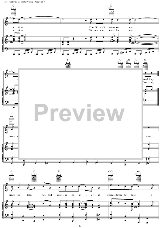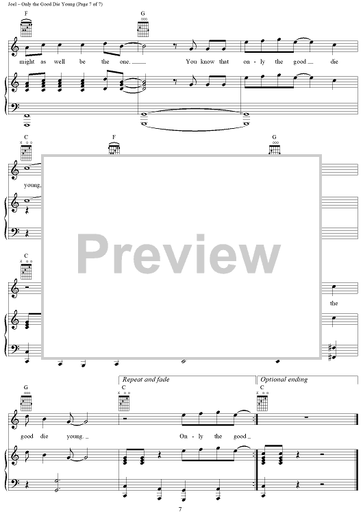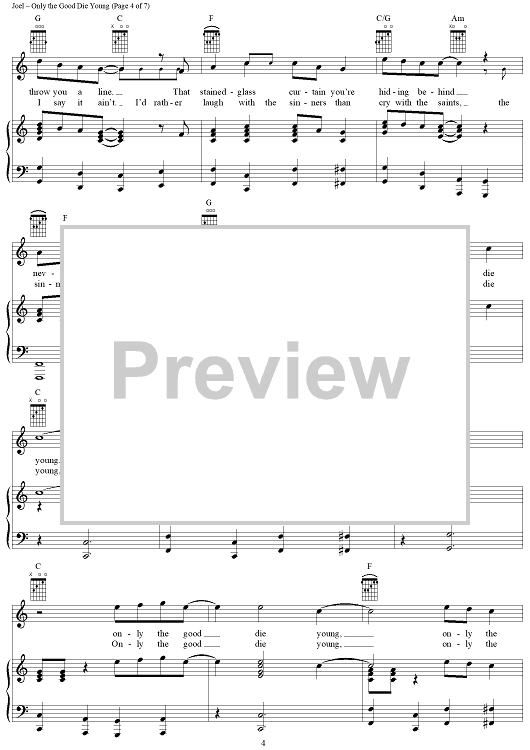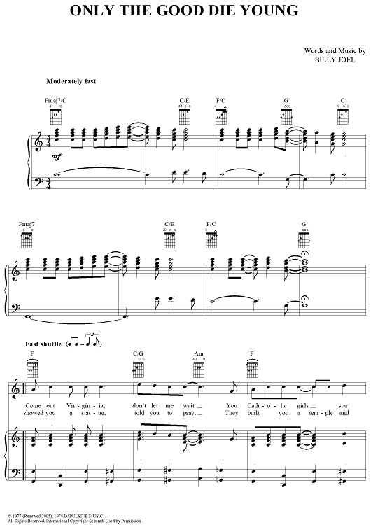 Digital Sheet Music for Only the Good Die Young by Billy Joel scored for Piano/Vocal/Chords; id:367162