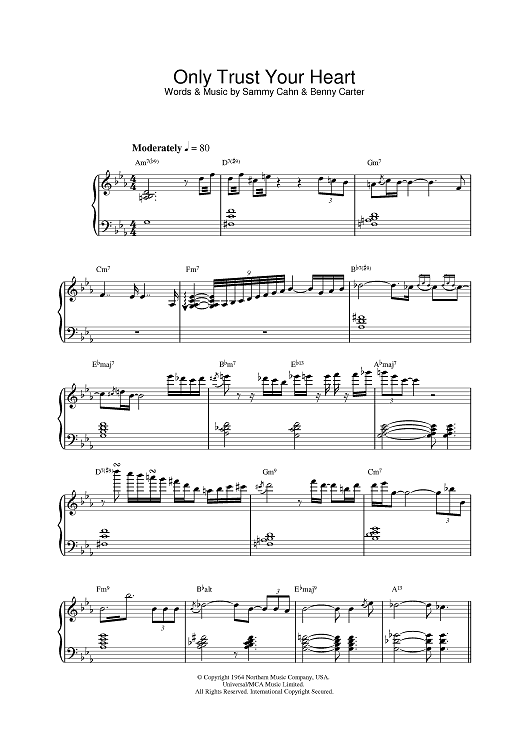 Digital Sheet Music for Only Trust Your Heart by Sammy Cahn, Diana Krall, Benny Carter scored for Piano/Vocal/Chords; id:385387