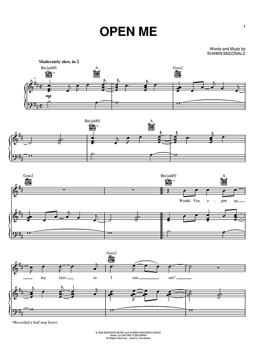 Digital Sheet Music for Open Me by Shawn McDonald scored for Piano/Vocal/Chords; id:381905