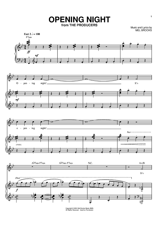 Digital Sheet Music for Opening Night by Mel Brooks scored for Piano/Vocal/Chords; id:381616