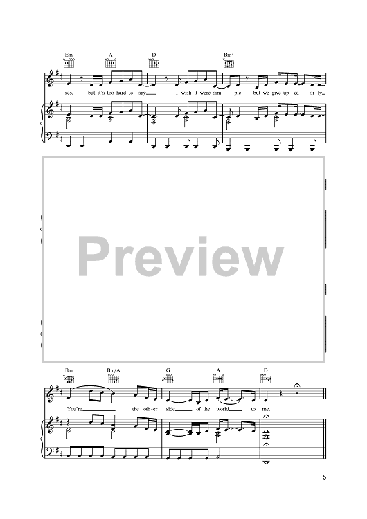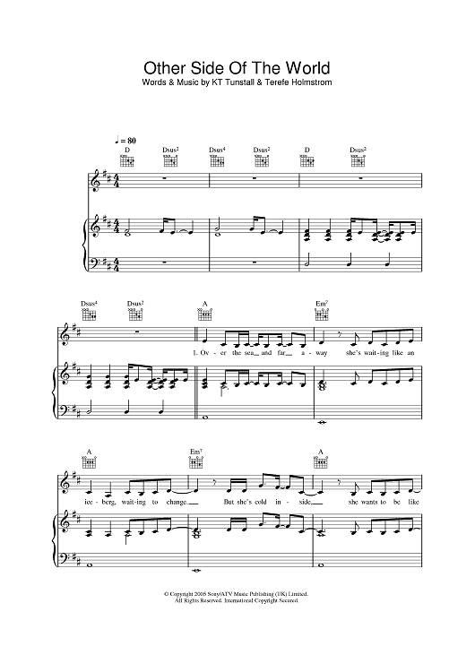 Digital Sheet Music for Other Side Of The World by KT Tunstall, Terefe Holmstrom scored for Piano/Vocal/Chords; id:384552