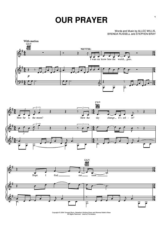 Digital Sheet Music for Our Prayer by Brenda Russell, Stephen Bray, Allee Willis scored for Piano/Vocal/Chords; id:398467