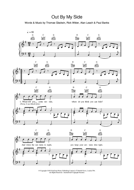 Digital Sheet Music for Out By My Side by Shed Seven scored for Piano/Vocal/Chords; id:376215